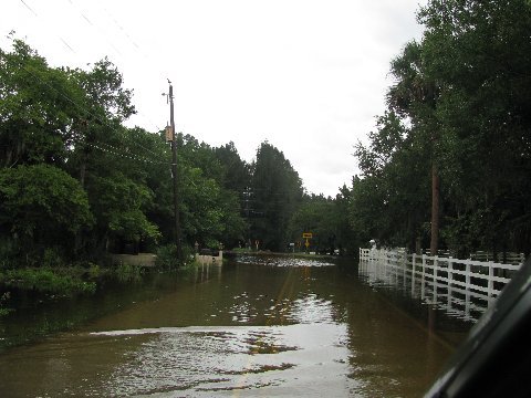 But when I got up on Thursday morning I could see what they were talking about. Although we were very lucky the water didn't come into the house, it came very close. We lost electric also that day and I realized that we were out of batteries so off to the store I went. I was smart enough not to take my car I took Bill’s SUV it set much higher off the road. Our road was high and dry but the road I used to exit was not…it scared me when I realized how deep it was but there was nothing I could do I had to keep going. I feel so bad for some of those people the water is in their houses and with every vehicle that goes by it causes waves which put more water in their house. I did not see any car’s on the road but lots of trucks and most of them were just rubber necking what a shame.